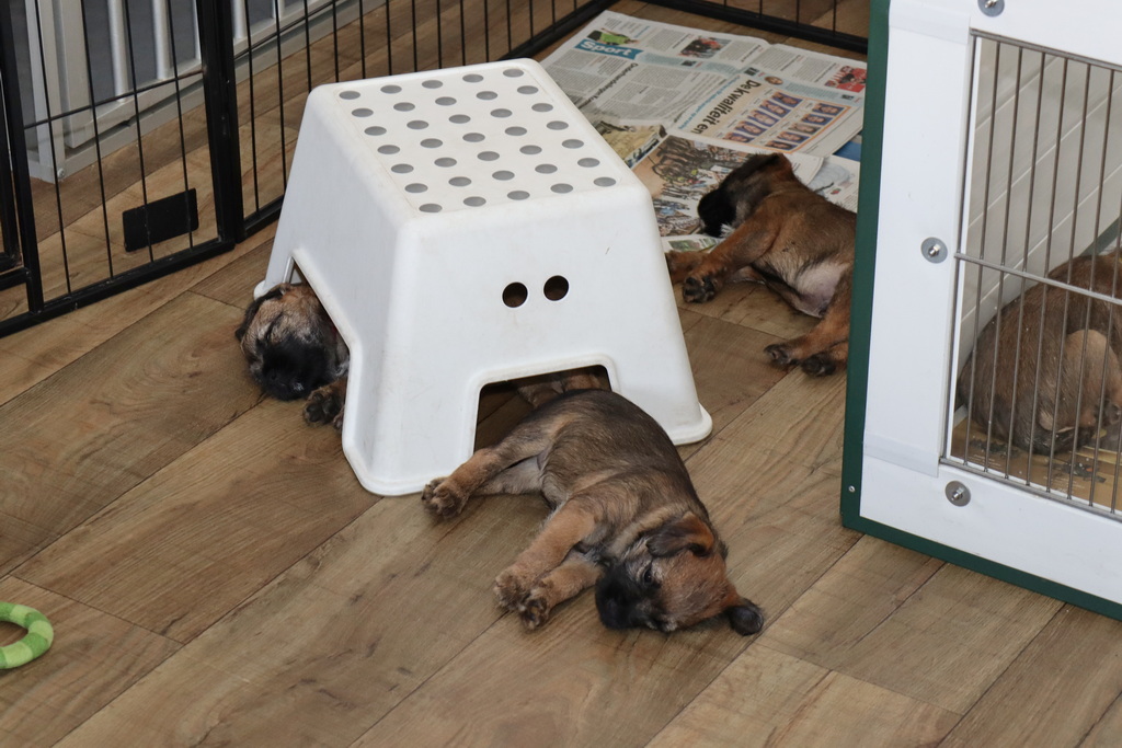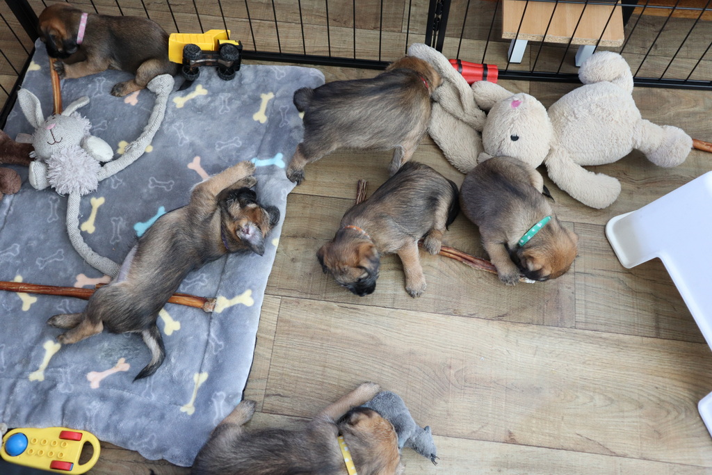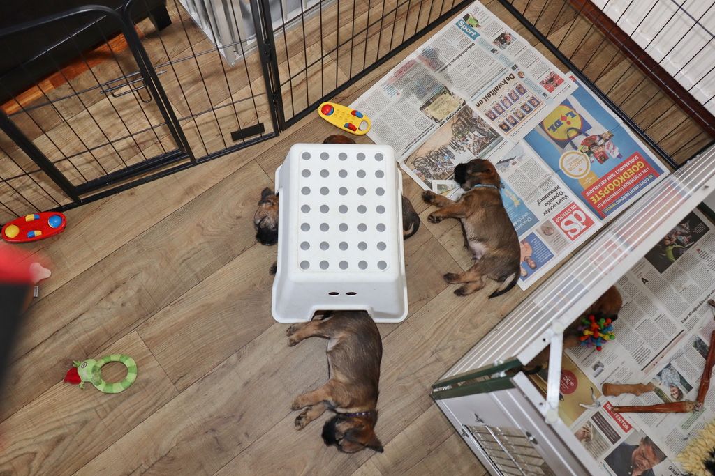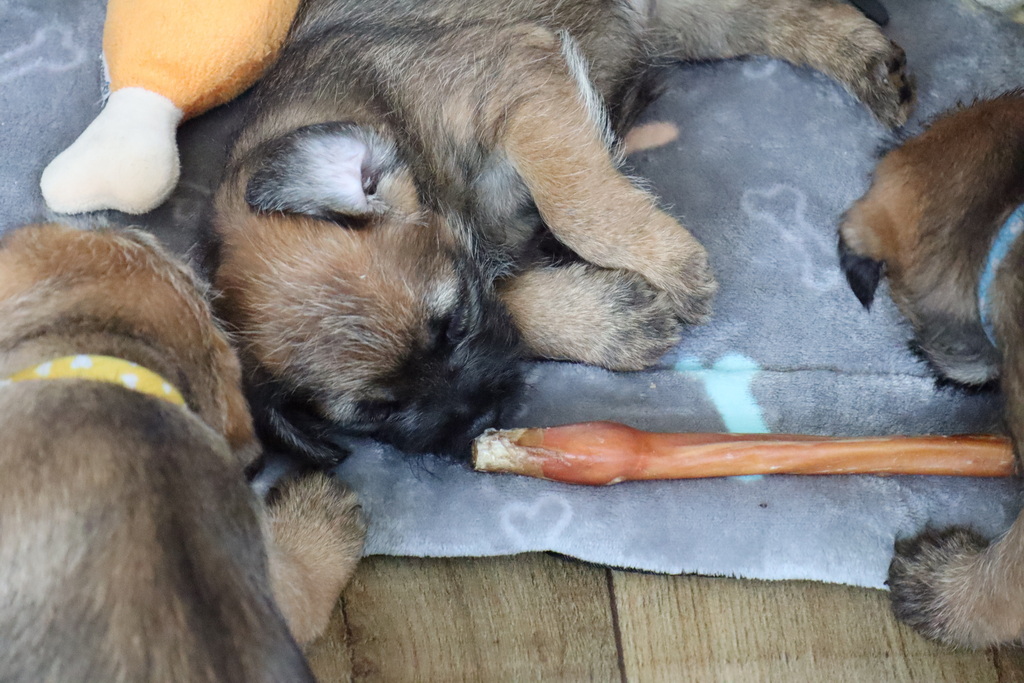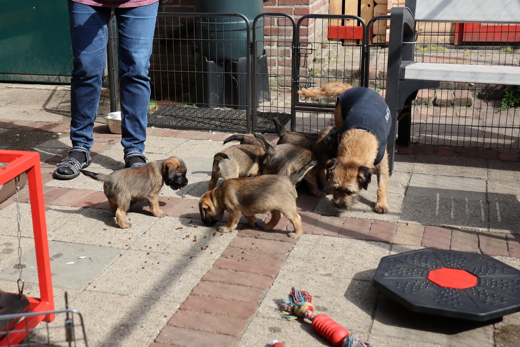 De pups eten nu vijf keer per dag. De voeding ’s nachts zijn wij gestopt en dat gaat gelukkig heel goed. Dat scheelt weer een stuk in de nachtrust.