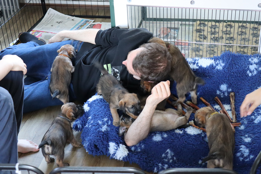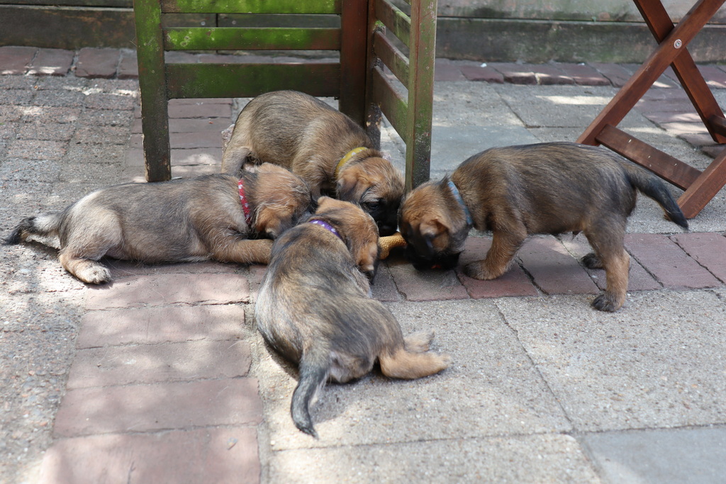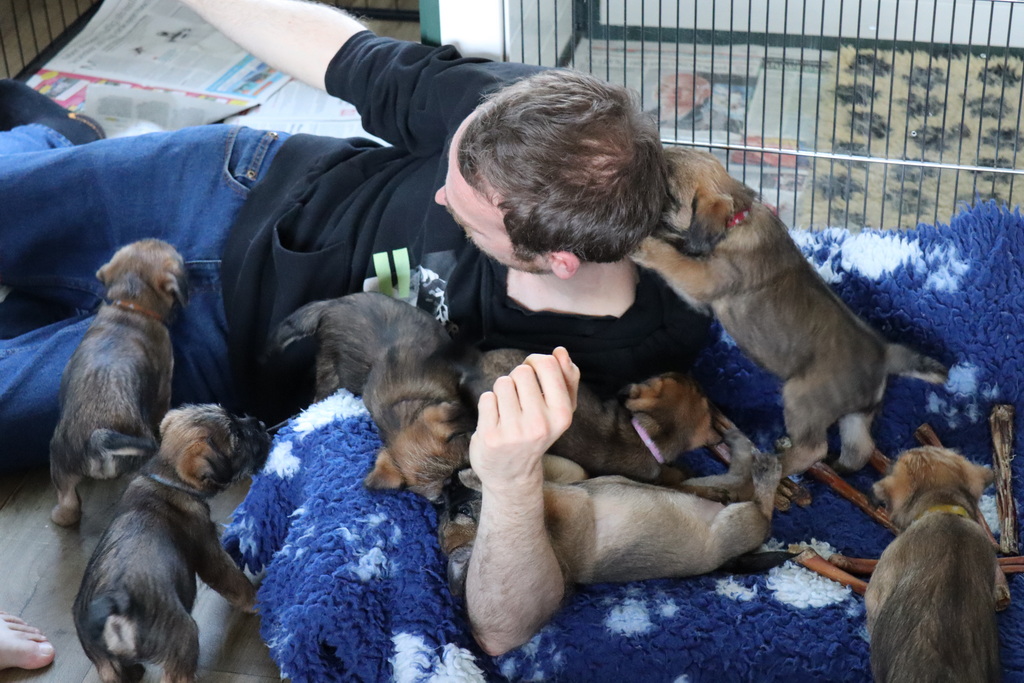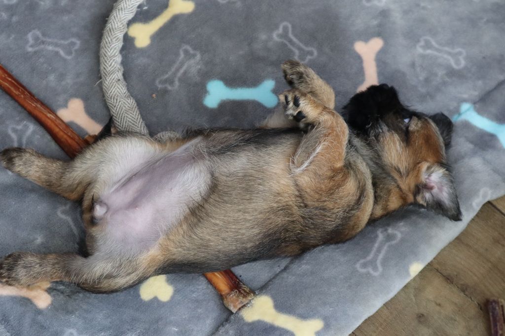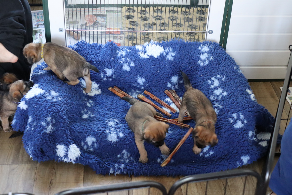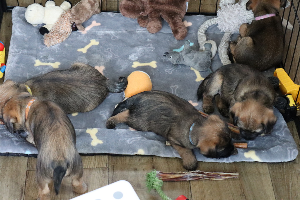 De pups eten nu vijf keer per dag. De voeding ’s nachts zijn wij gestopt en dat gaat gelukkig heel goed. Dat scheelt weer een stuk in de nachtrust.