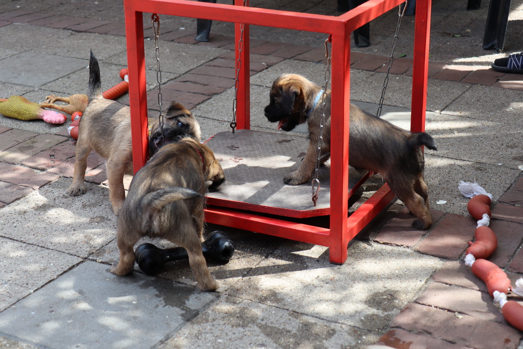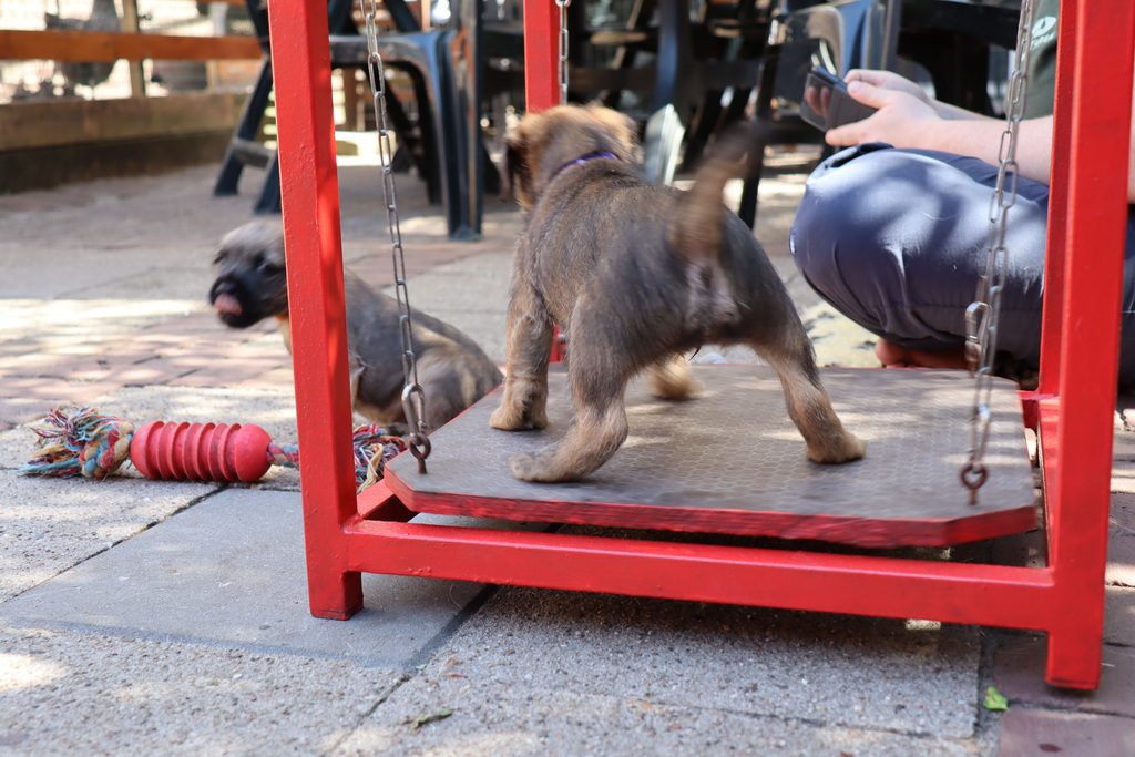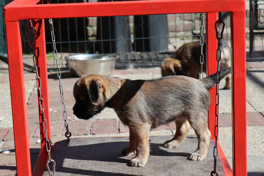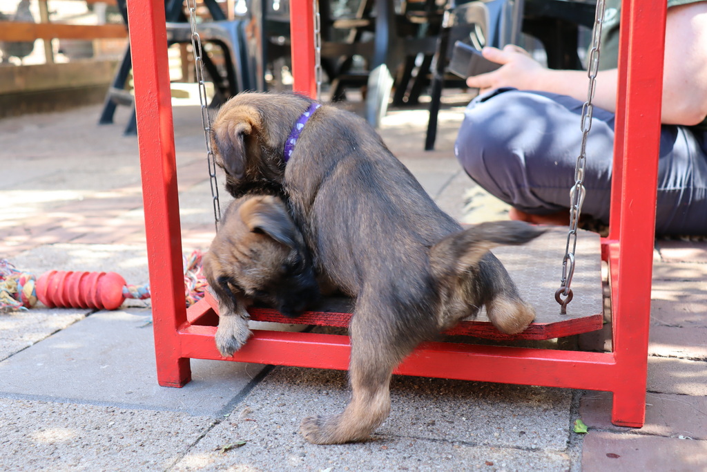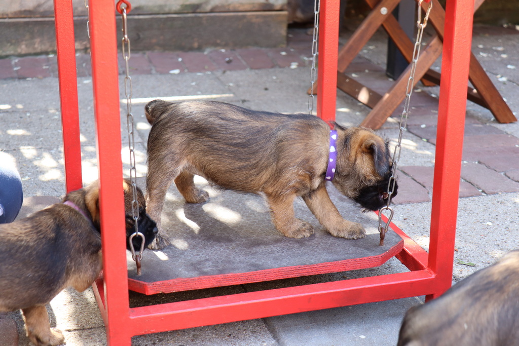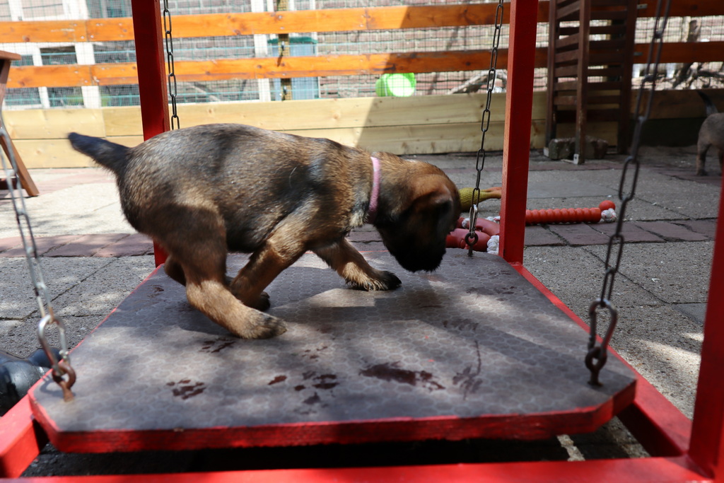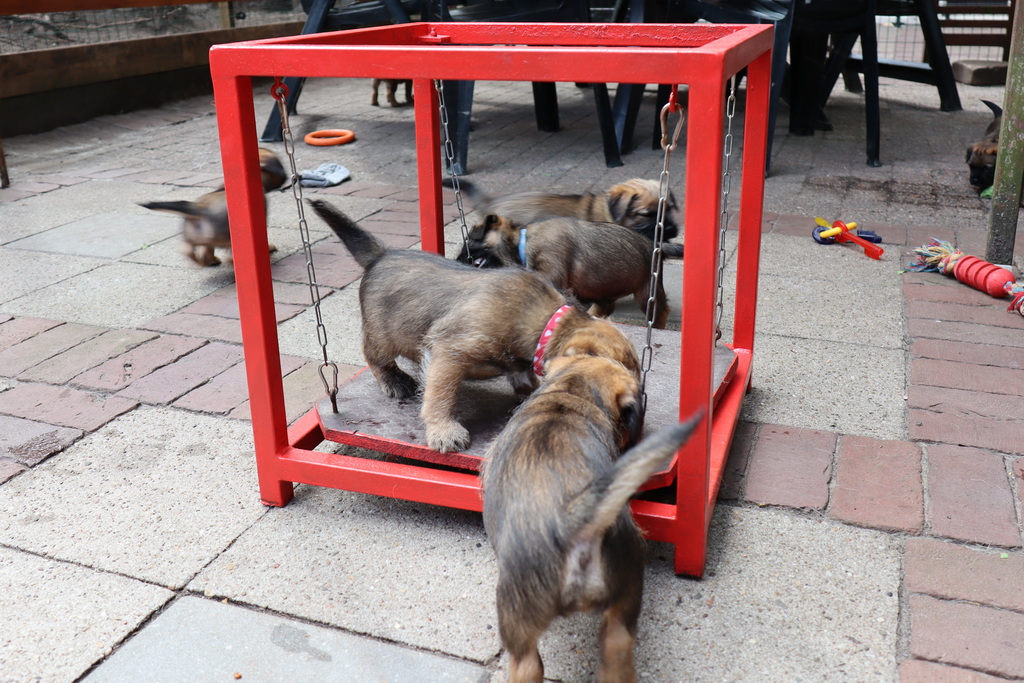 Van een collega Border fokker hebben we een mooie schommel te leen gekregen. De pups vinden het prachtig en spelen er graag op. Het is wonderbaarlijk hoe goed ze hun evenwicht kunnen bewaren op die bewegende ondergrond.