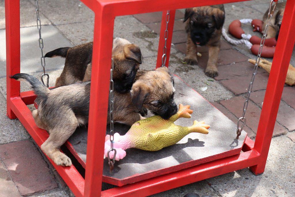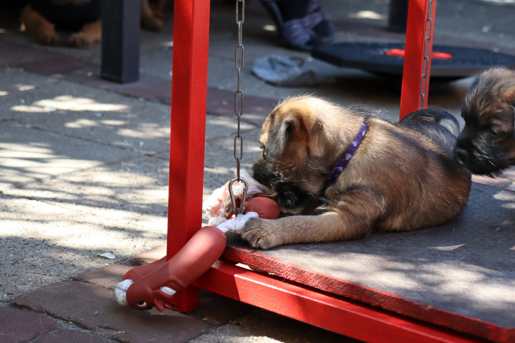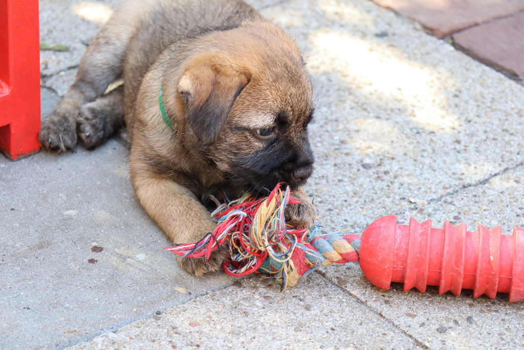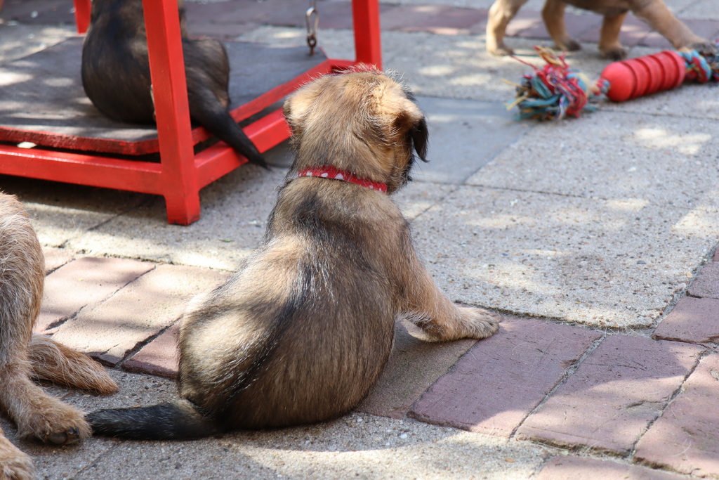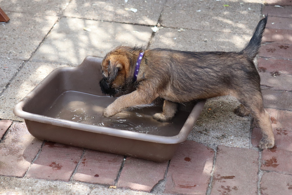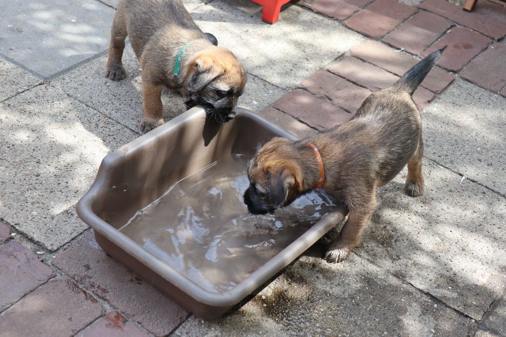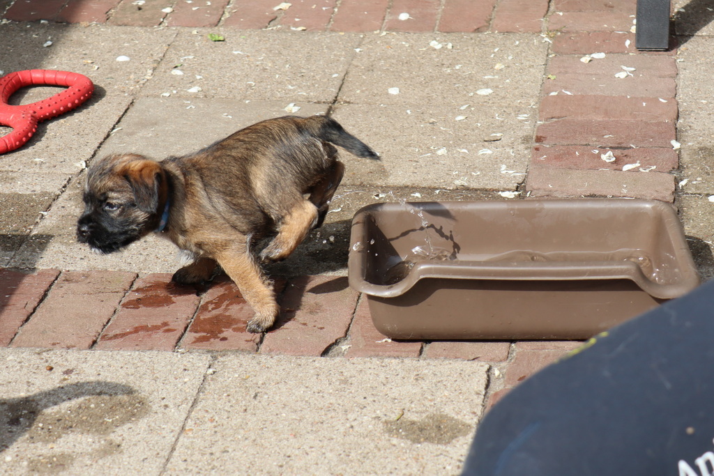 Gewoon wat foto’s van pups in de tuin. Lekker buiten met allerlei speelgoed. En als het warm is een bak met water als privé zwembad. Wat wil een hond nog meer?
