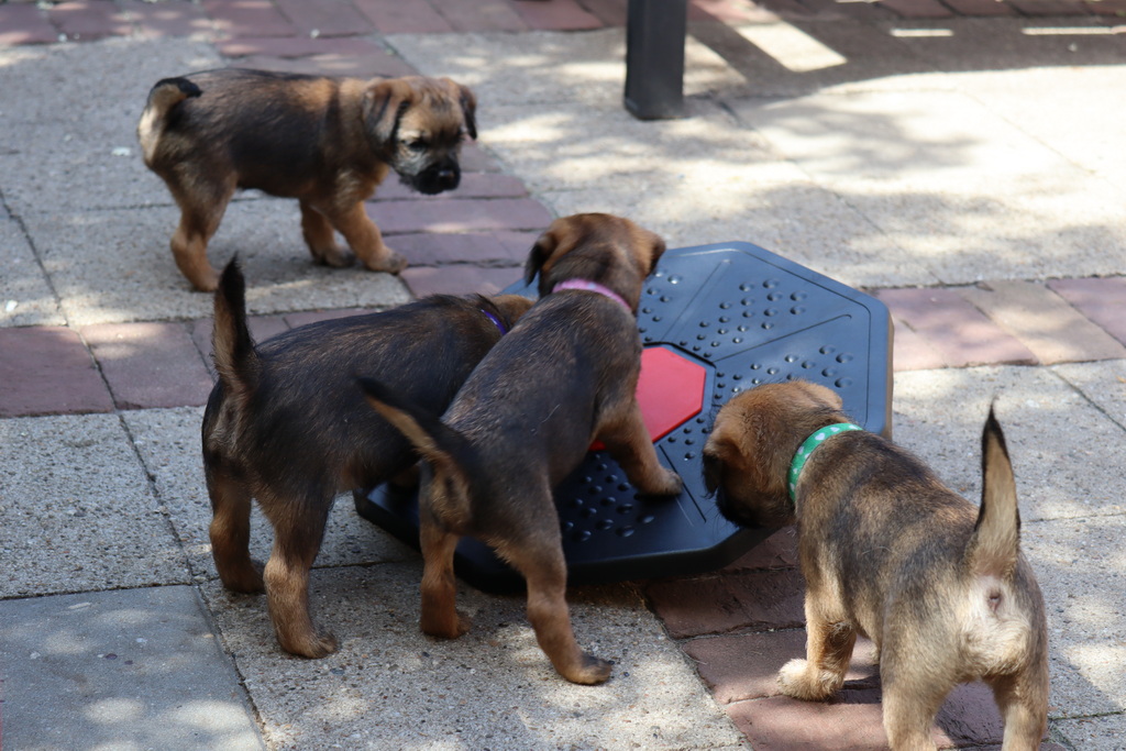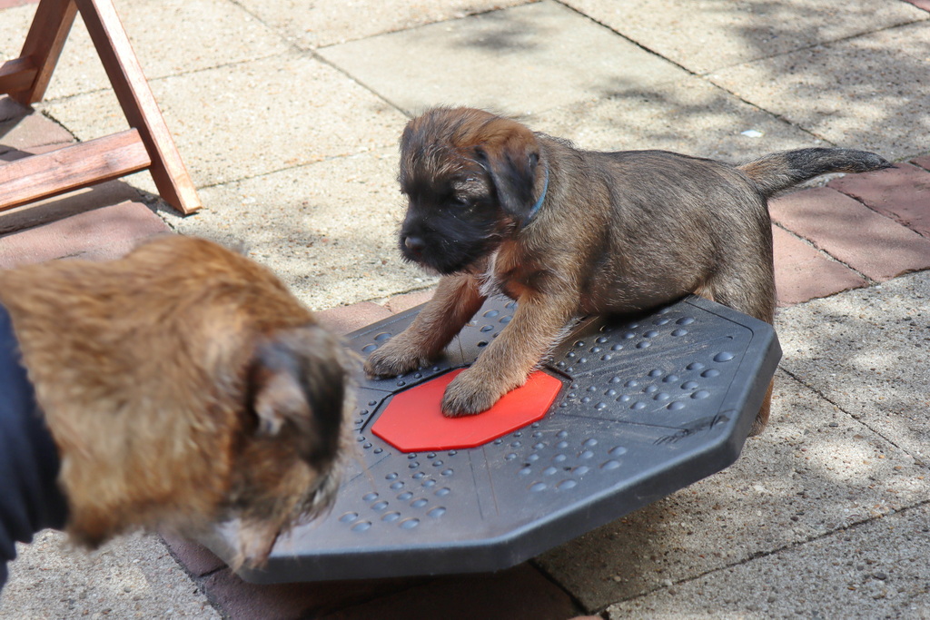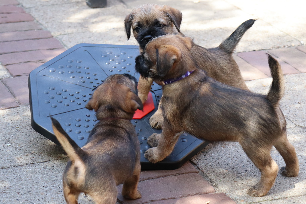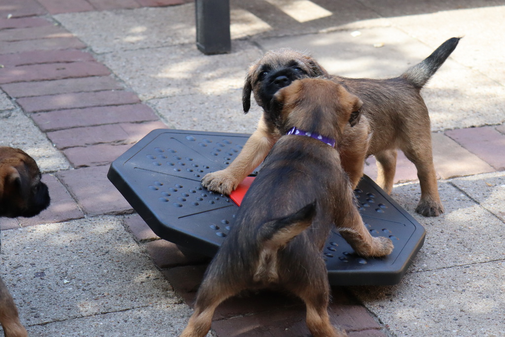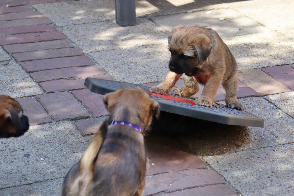 Zelf hadden wij al een evenwichtsplaat. Die is bedoeld voor mensen, maar voor de pups is het ook prachtig. Ze racen er soms overheen en lanceren zichzelf zo’n beetje. De plaat is gelukkig heel laag, dus er gebeuren geen ongelukken.