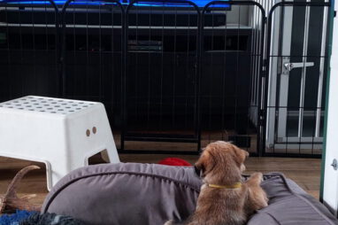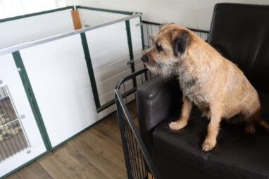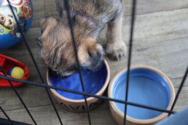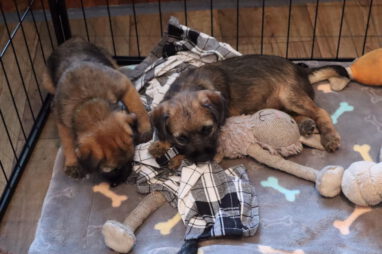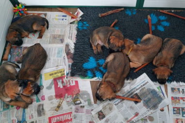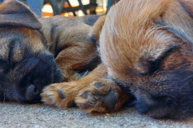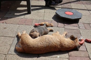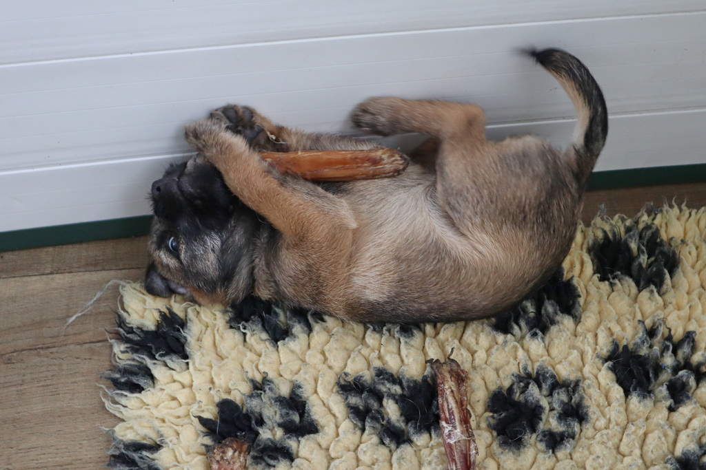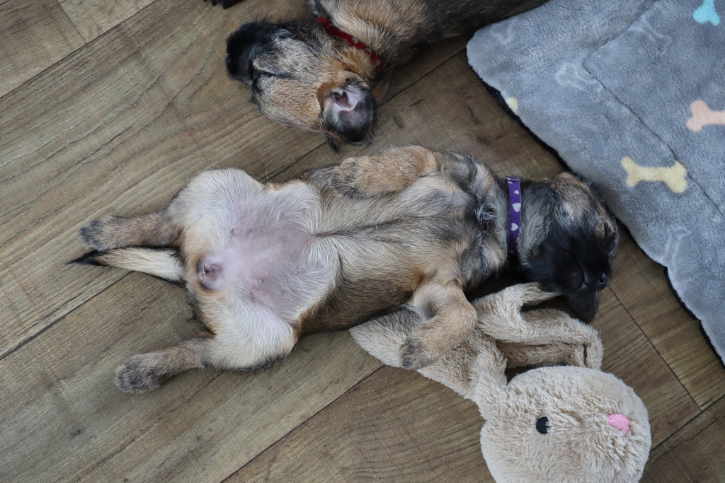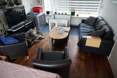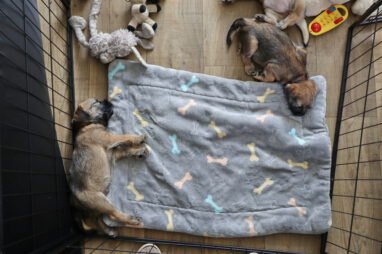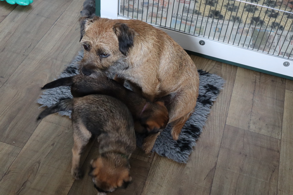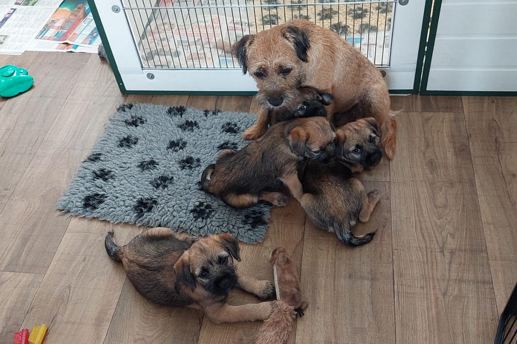We hebben ook ritjes met de auto gemaakt en dan helpt het als de pups al bekend zijn met een bench. Er werd niemand wagenziek.