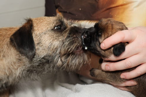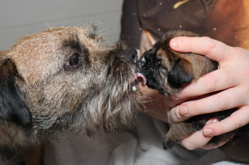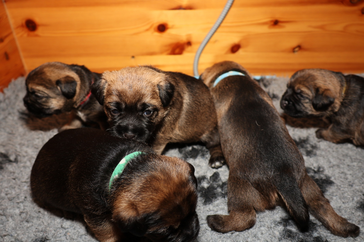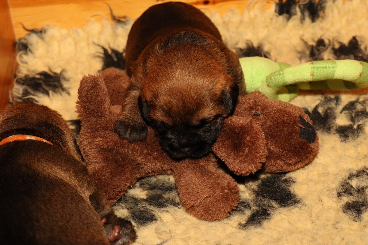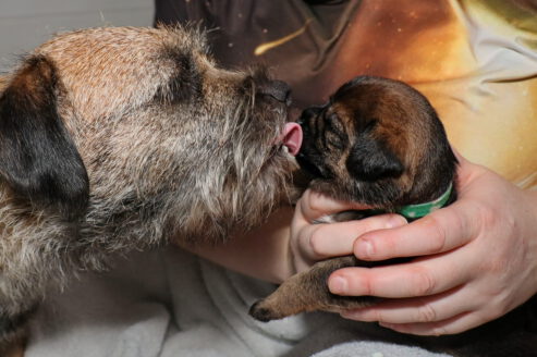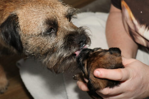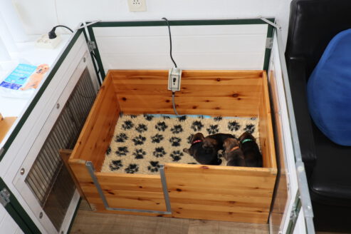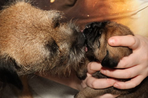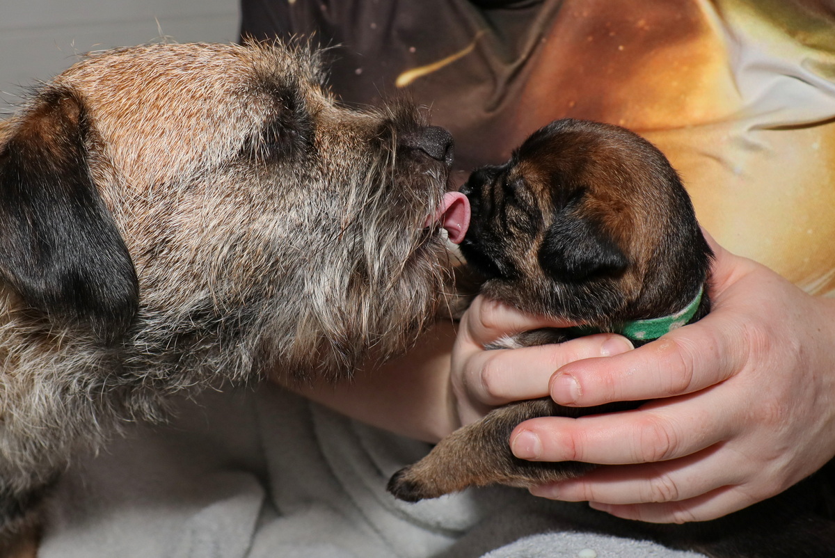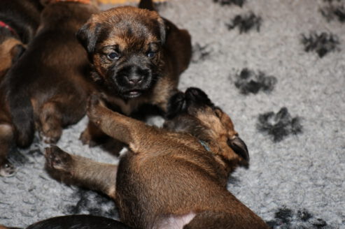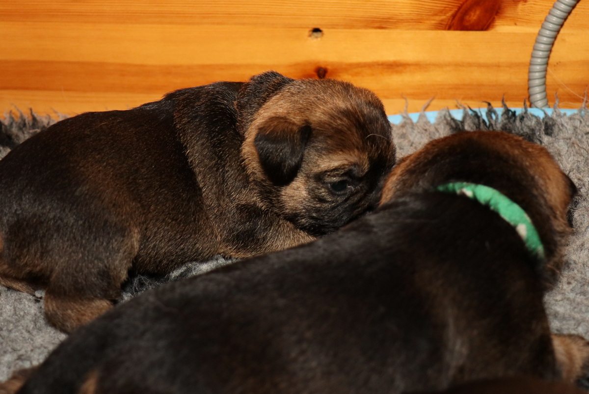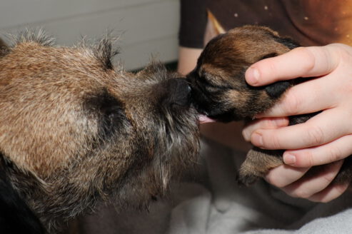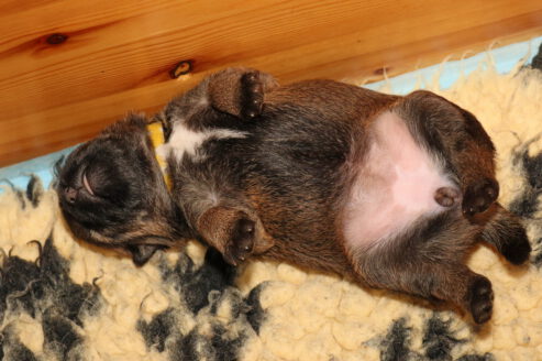 Als ze wakker worden krijgen ze eerst een poetsbeurt van Rosie. Dan mogen ze lekker bij Rosie zogen. Dat is nog best wat werk voor de puppy’s. Ze moeten wel 5 tot 10 minuten de melkklieren van Rosie stimuleren om daarna een minuutje melk te krijgen. Dan controleren ze nog of alle tepels wel echt leeggezogen zijn.