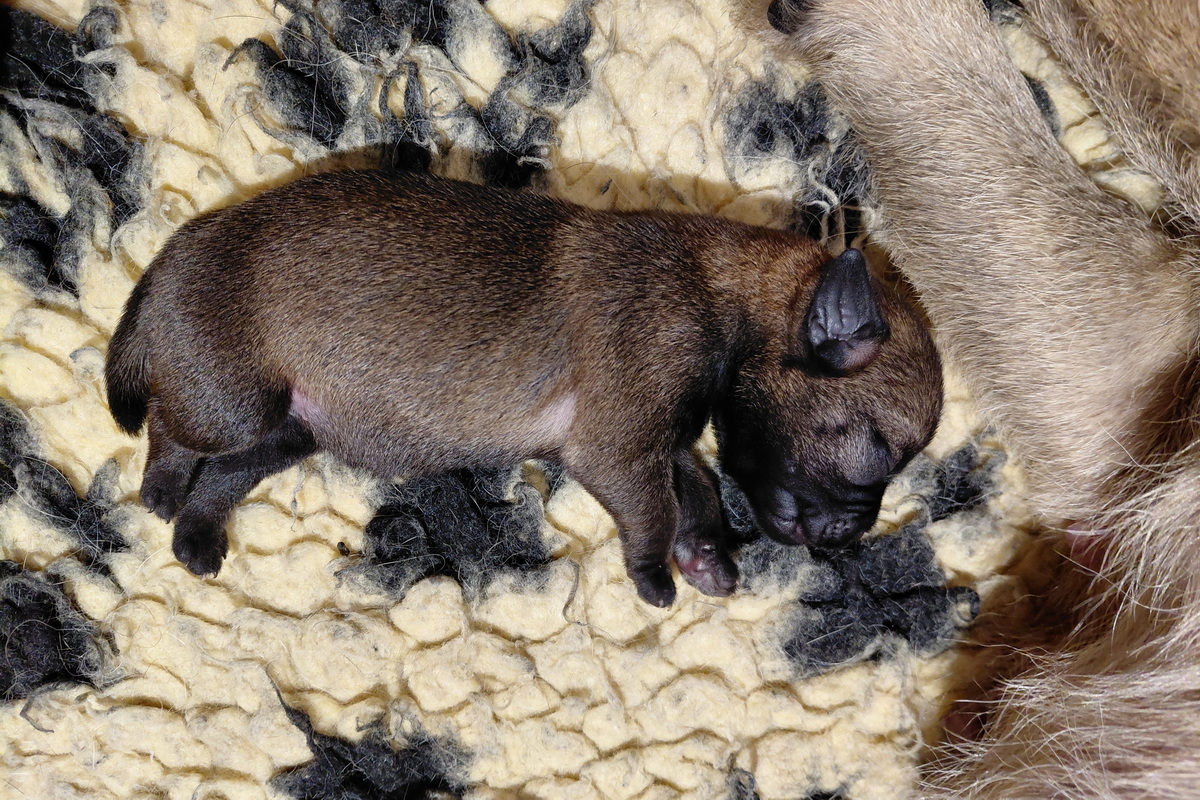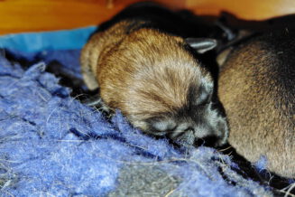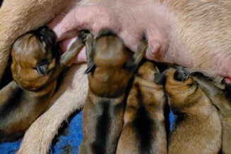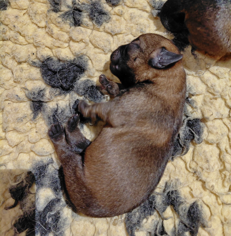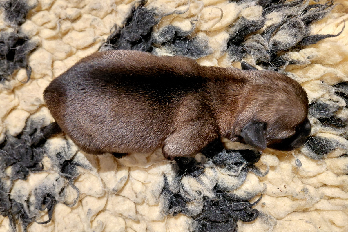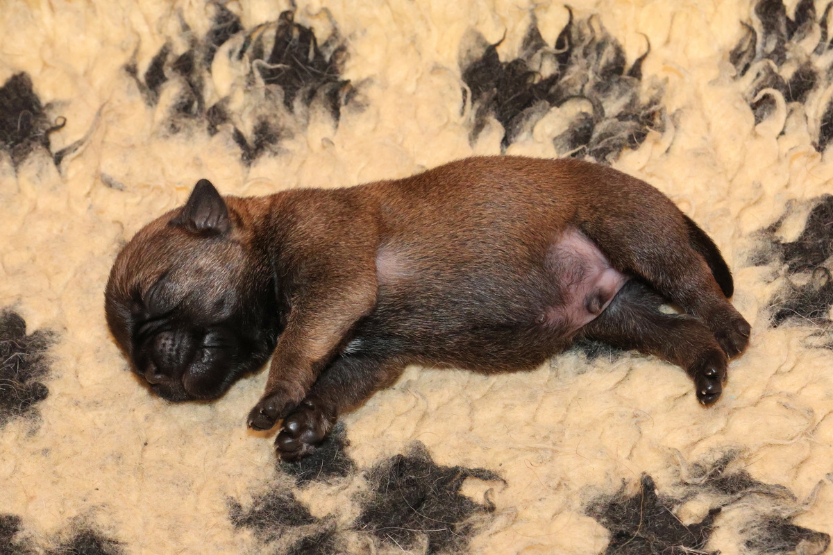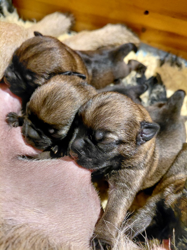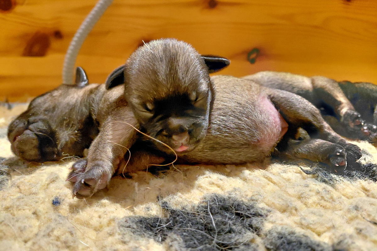 Er gebeurt eigenlijk niet zo heel veel, die eerste week. De pups zijn nog blind en doof en helemaal afhankelijk van hun moeder. Ze drinken bij Rosie, worden door haar verzorgd en slapen heel veel. Belangrijk is dat er regelmaat komt.