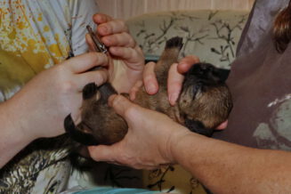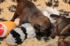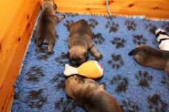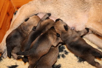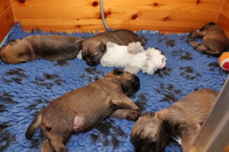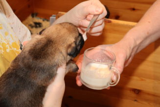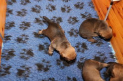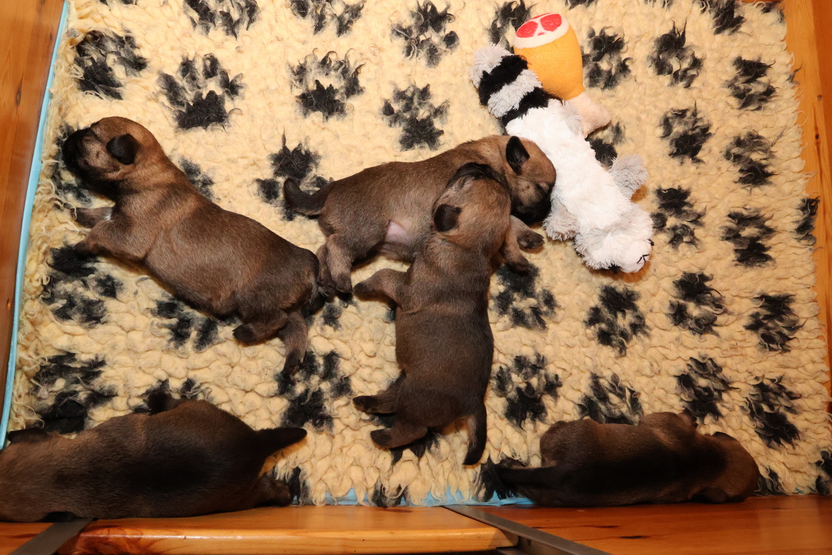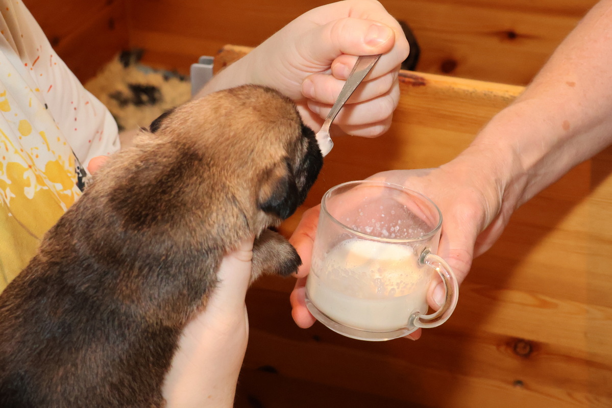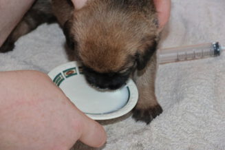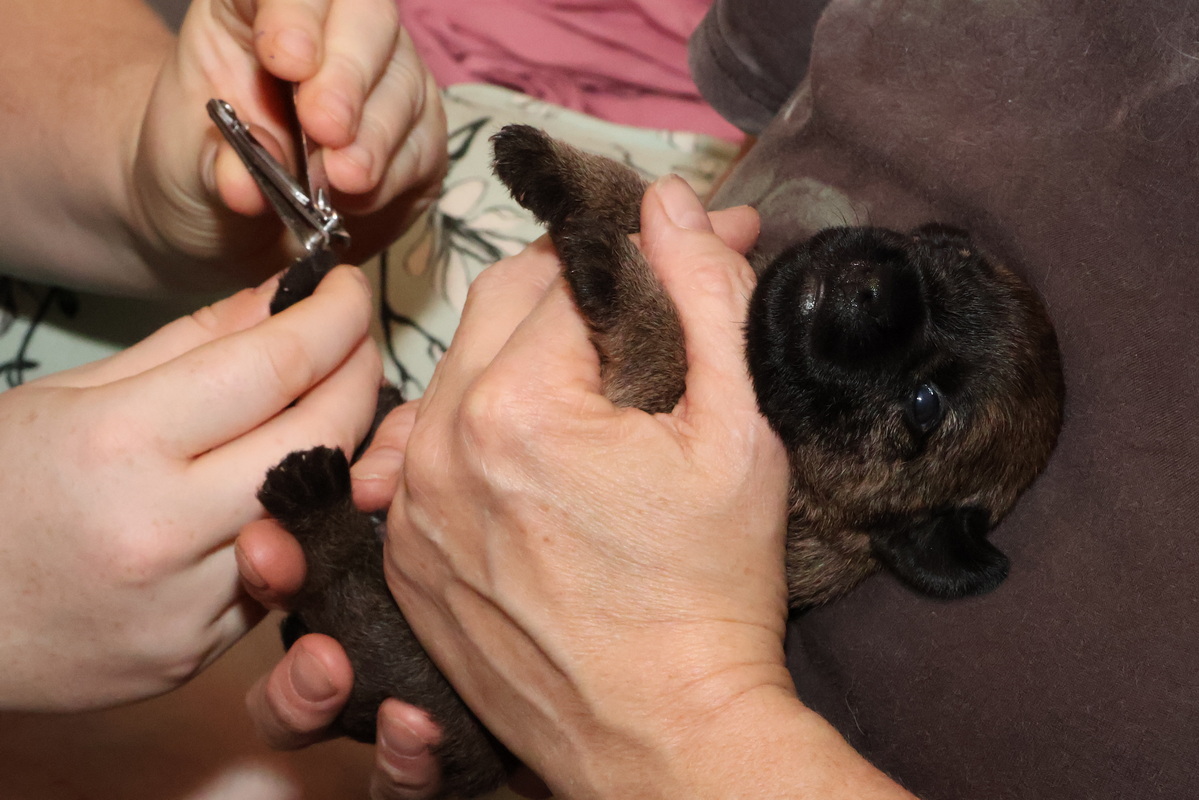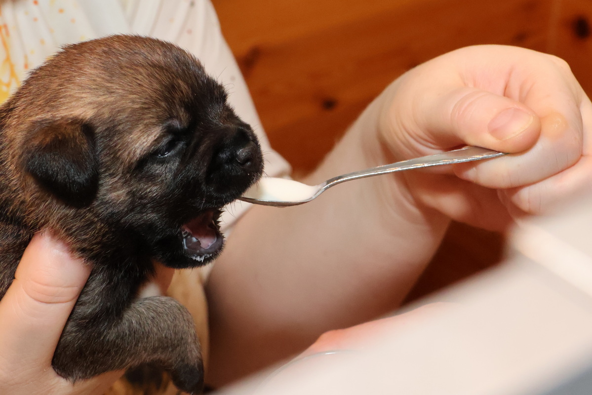 De derde week is altijd druk voor de pups. De week begon met ontwormen. Dat moeten de pups elke twee weken. Lekker vonden ze het niet, maar ze deden er geen van allen moeilijk over. Het hoort er nu eenmaal bij.