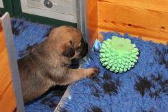 Ze spelen in de werpkist, maar ze mogen ook vaak in de kamerkennel. Ze kunnen zelf kiezen waar ze spelen en slepen ook spelletjes in en uit de werpkist.
