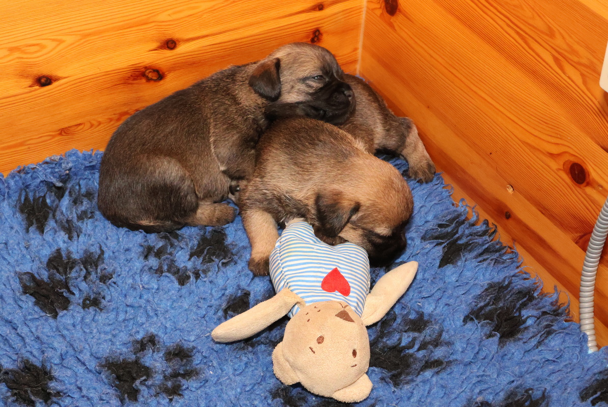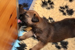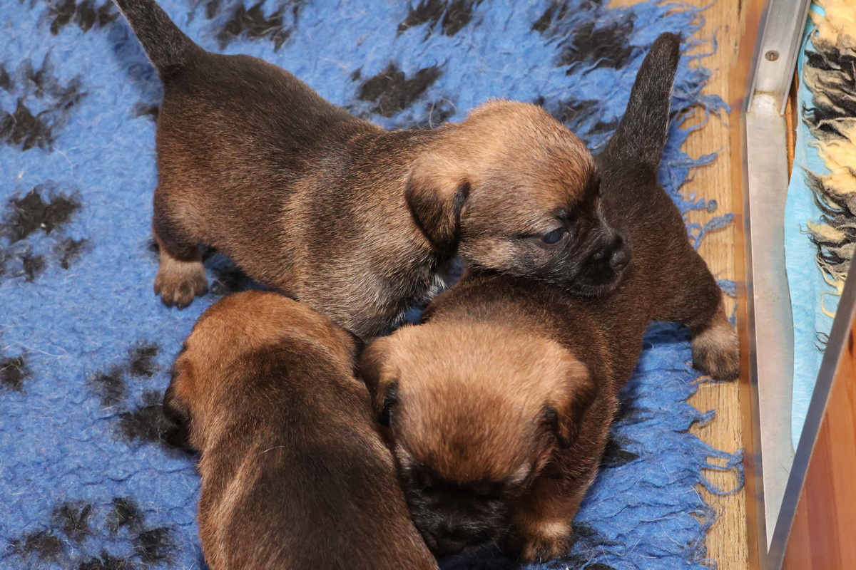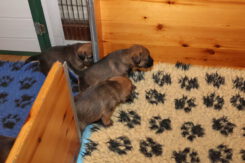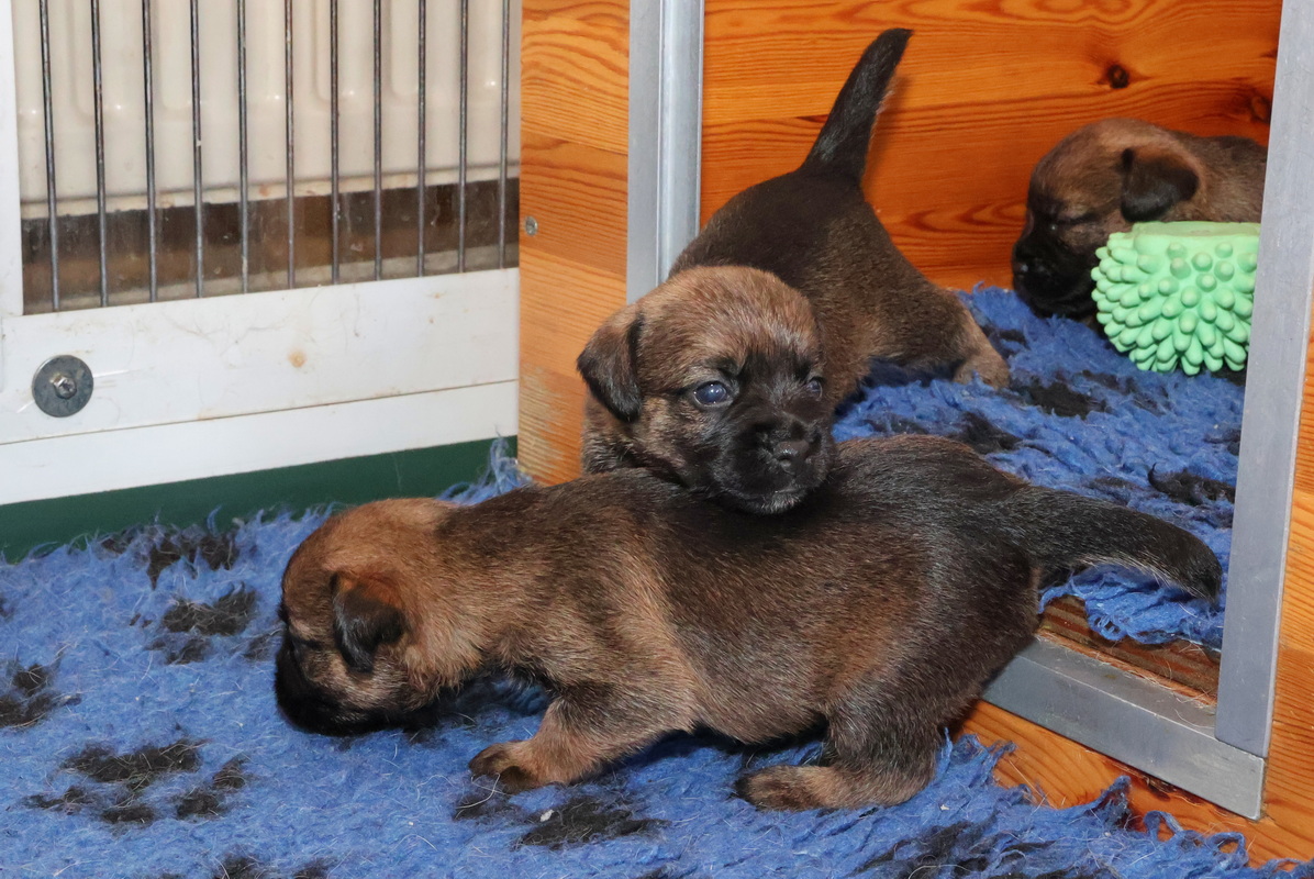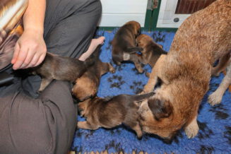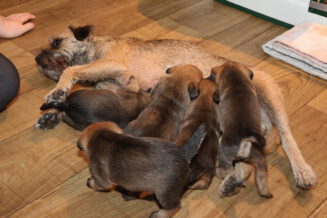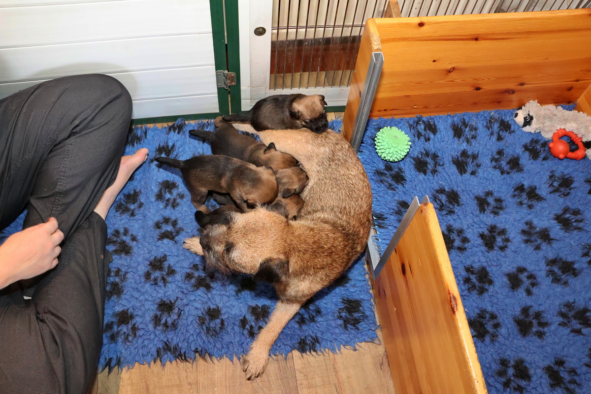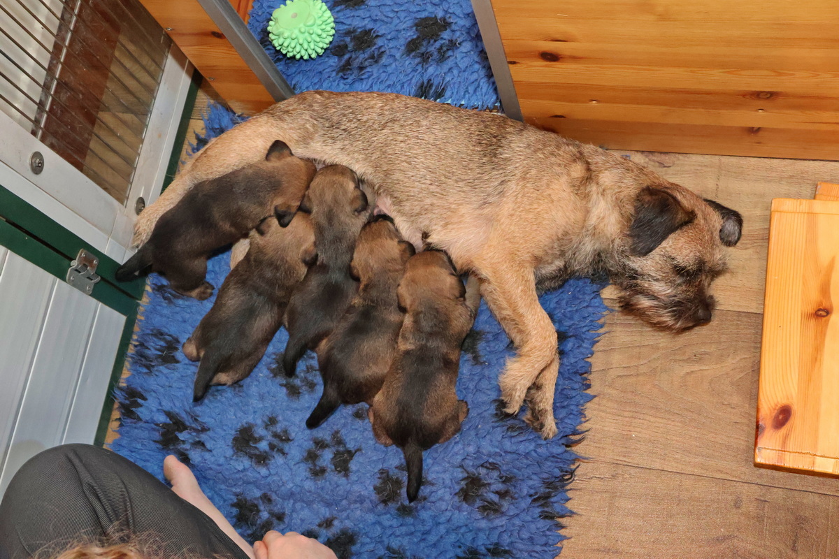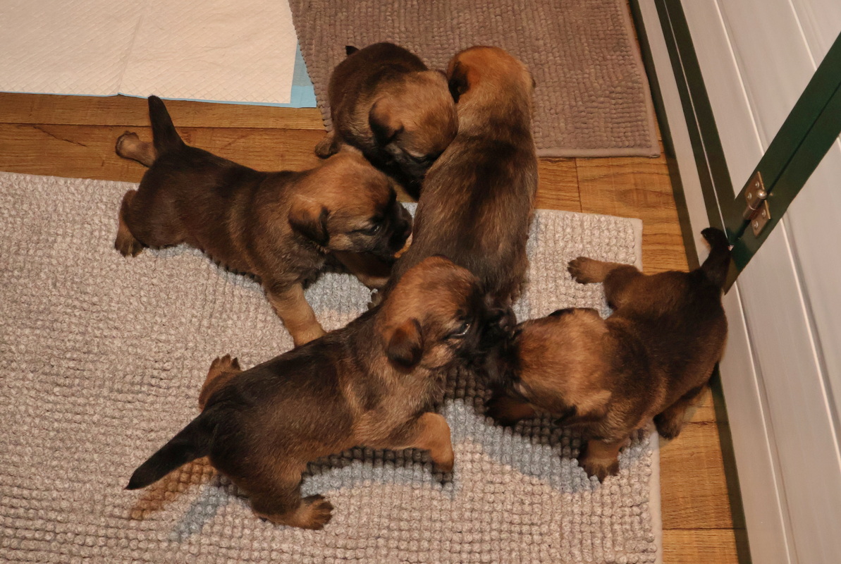 De puppy’s zijn elke keer wat langer wakker.  Ze gaan dan lekker in de werpkist of de kamerkennel spelen. En natuurlijk om de drie uur even bij Rosie langs voor wat lekkers.