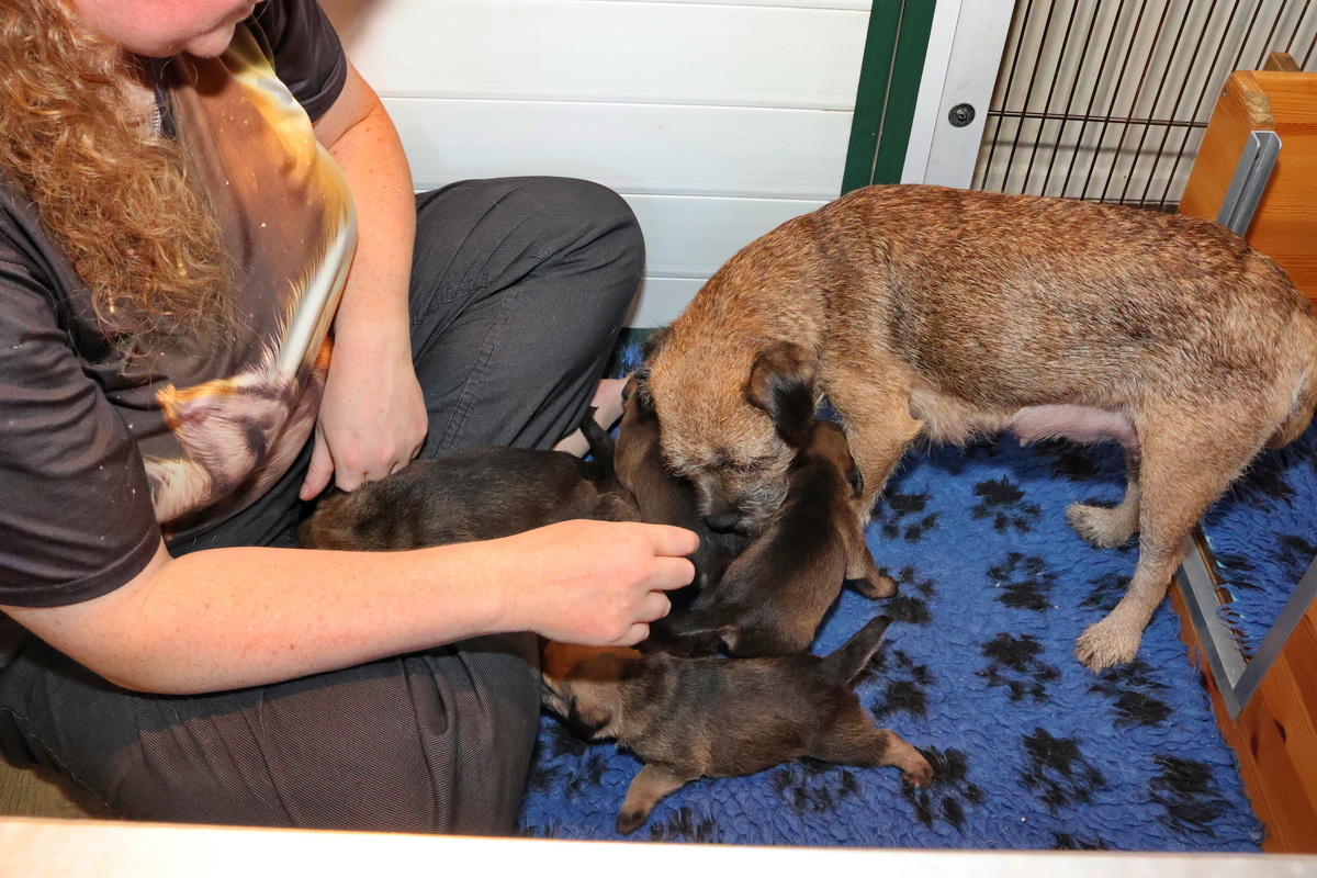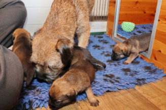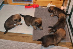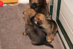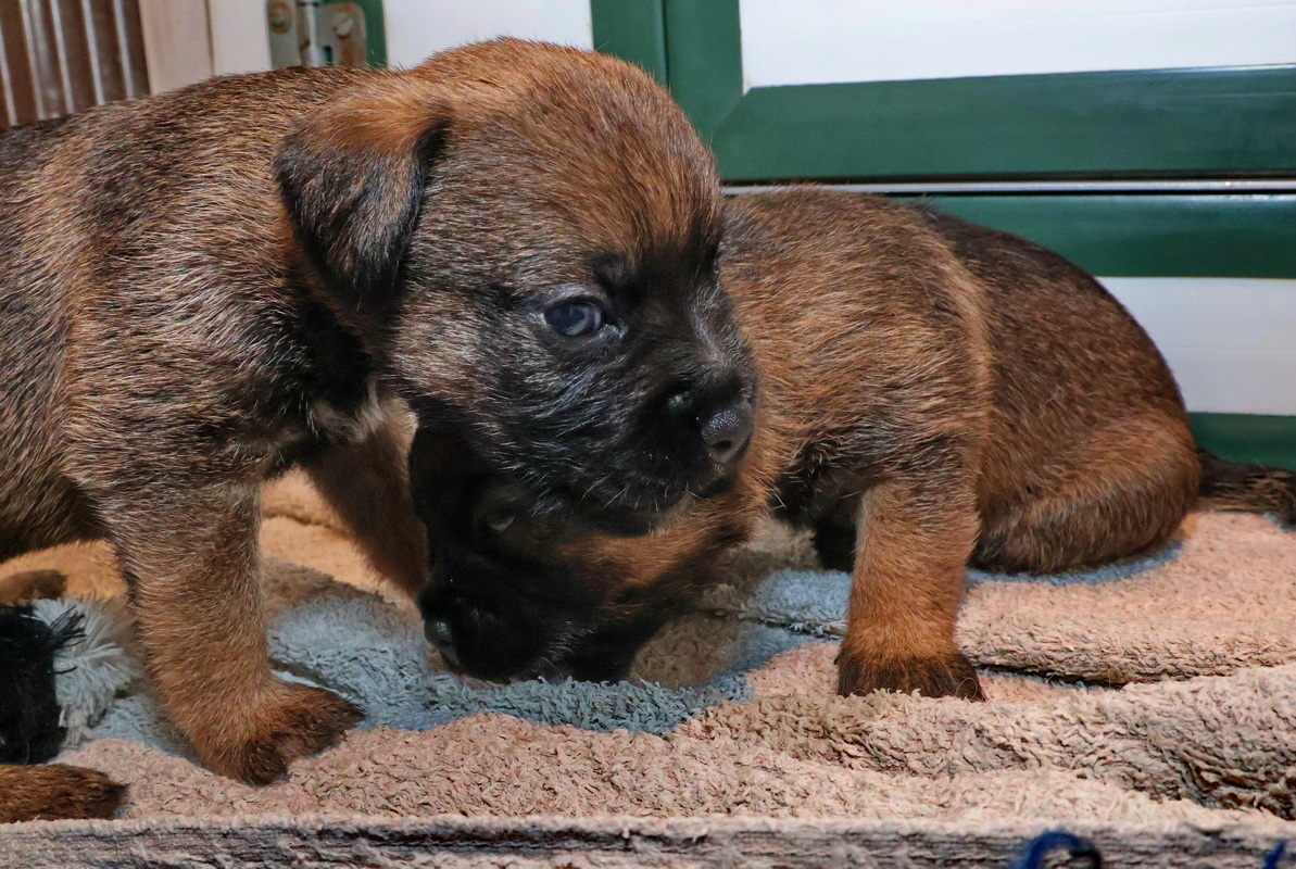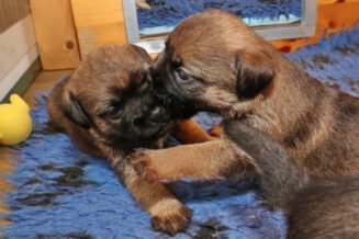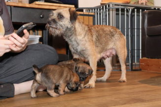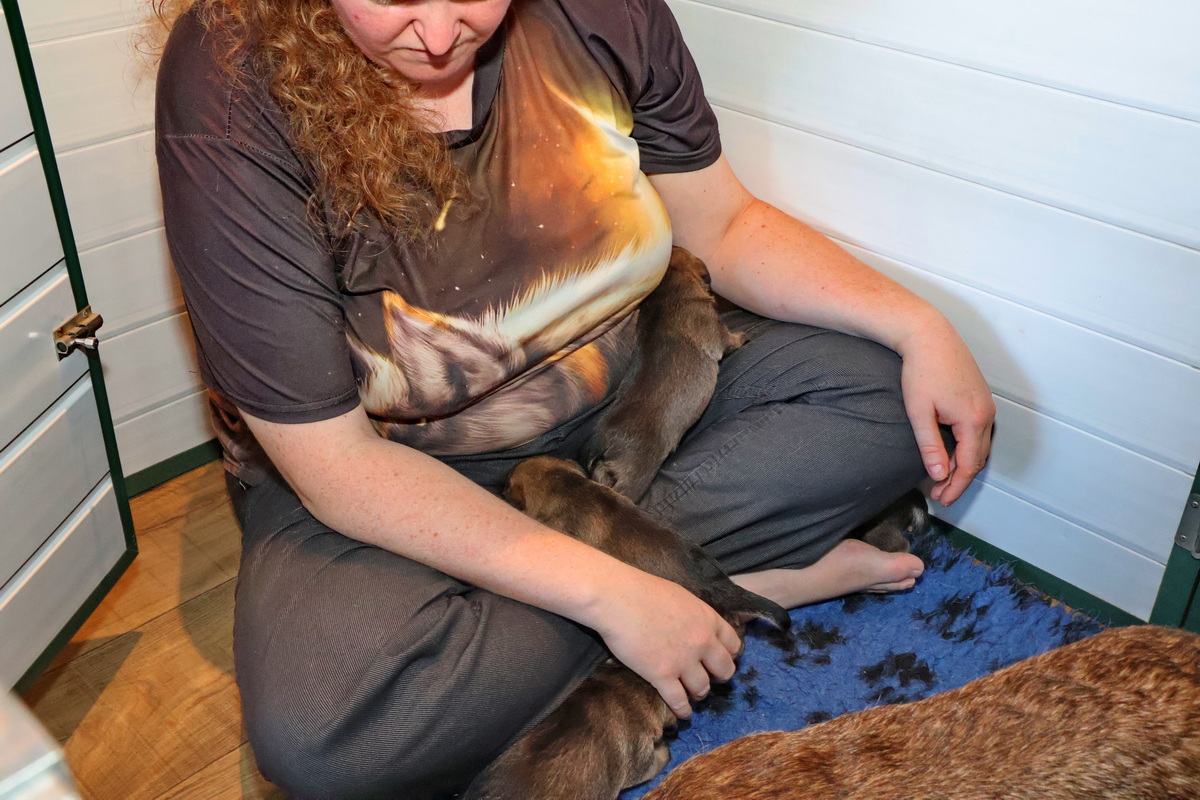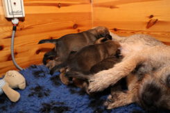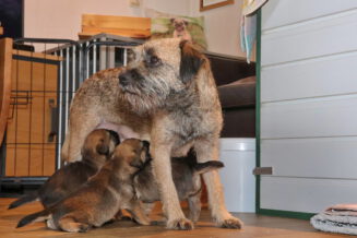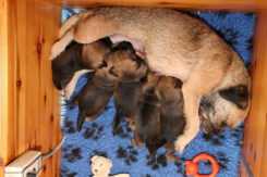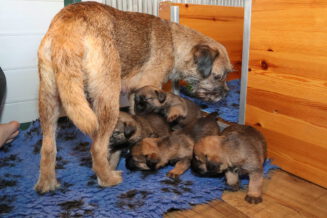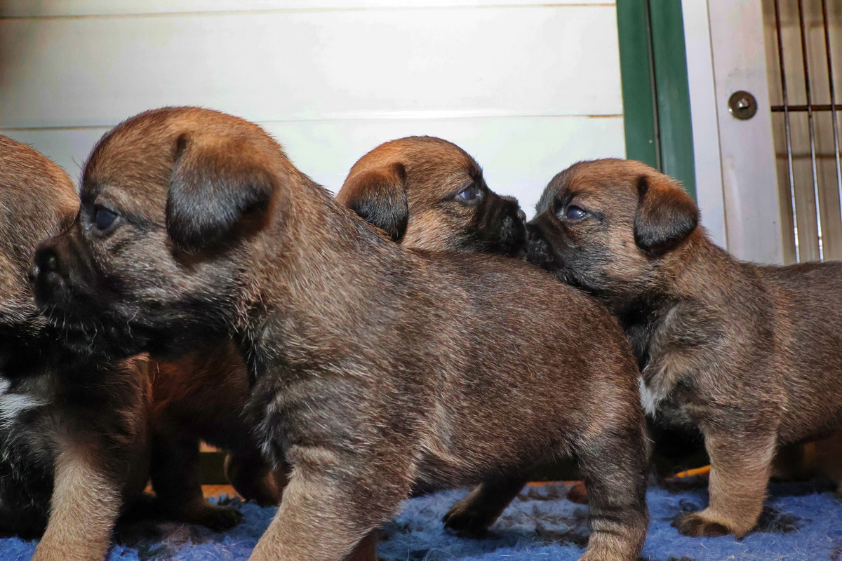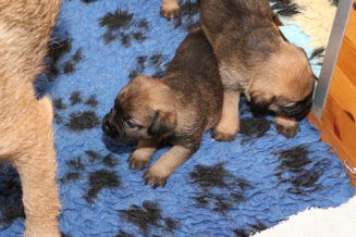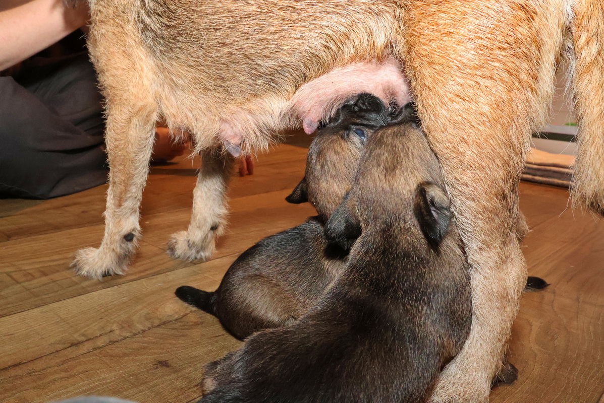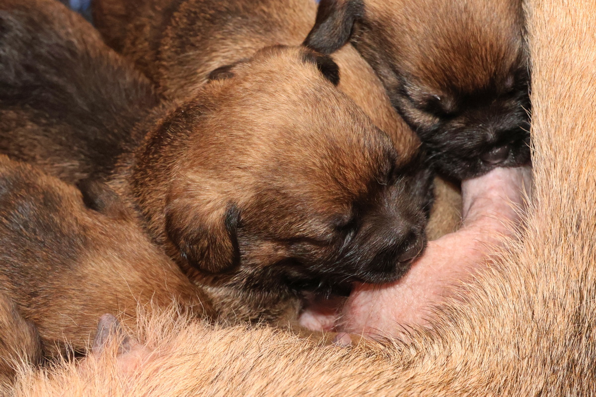 De puppy’s zijn elke keer wat langer wakker.  Ze gaan dan lekker in de werpkist of de kamerkennel spelen. En natuurlijk om de drie uur even bij Rosie langs voor wat lekkers.