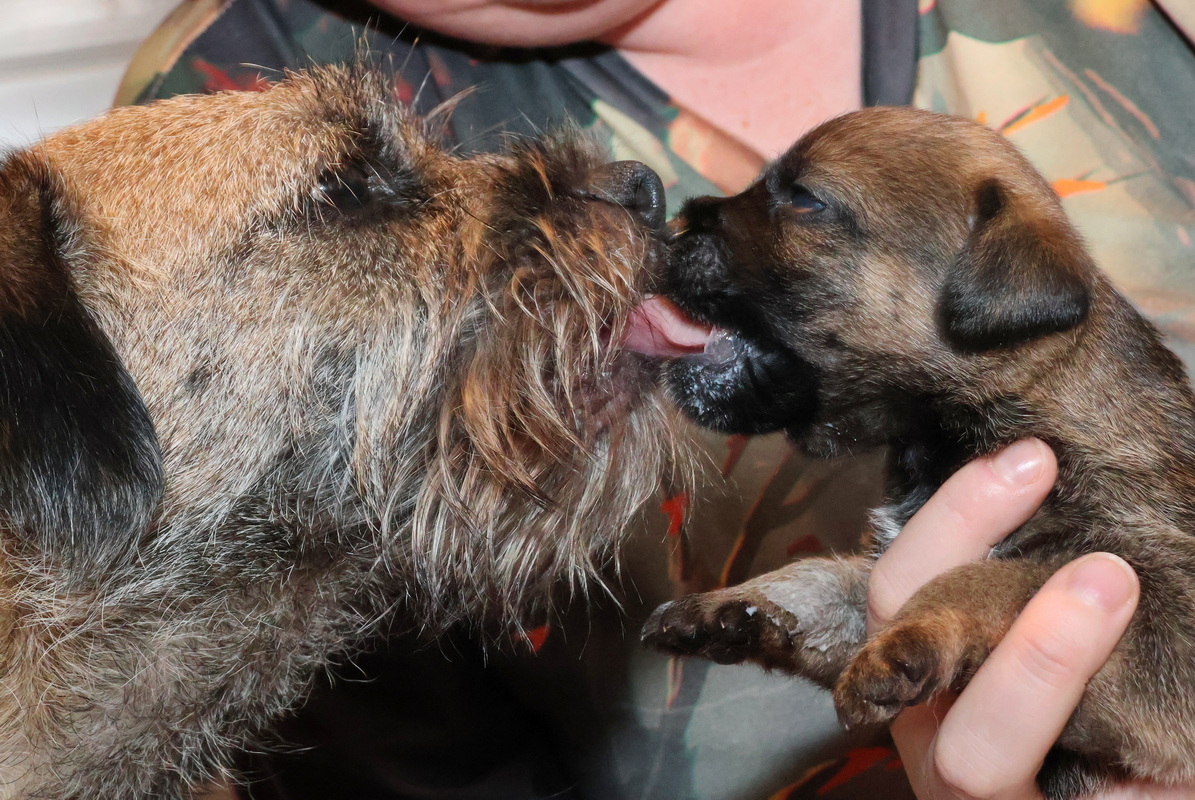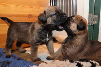 Ze voelden het aankomen, ze konden niet wachten tot het deurtje van de kamerkennel open ging. We waren nog even bang dat ze niet over het drempeltje van het deurtje konden komen, maar dat was geen enkel probleem. Parmantig liepen ze door de kamer. Natuurlijk was moeder Rosie er ook bij om een oogje in het zeil te houden.