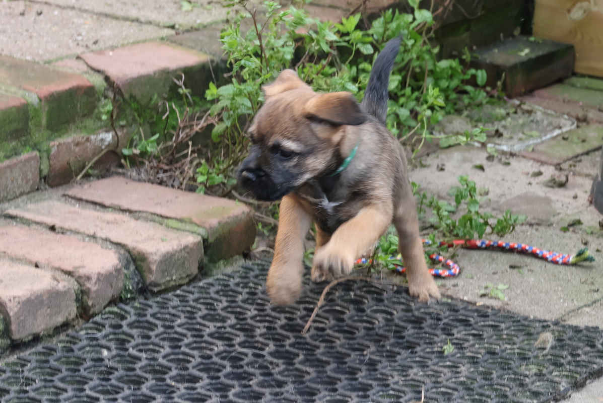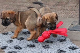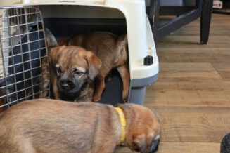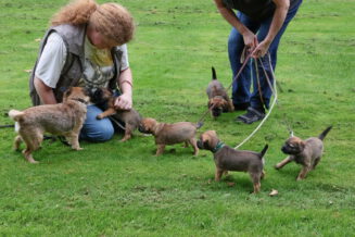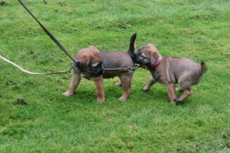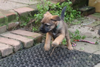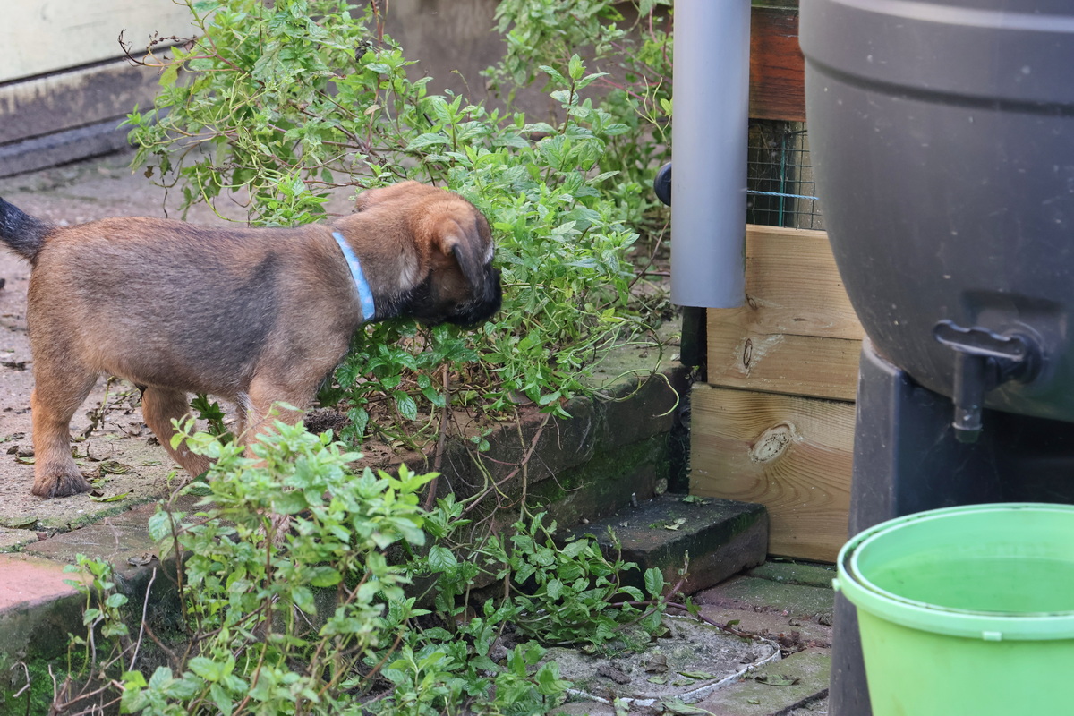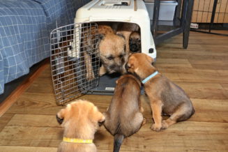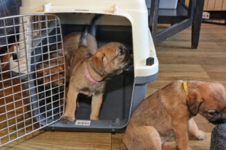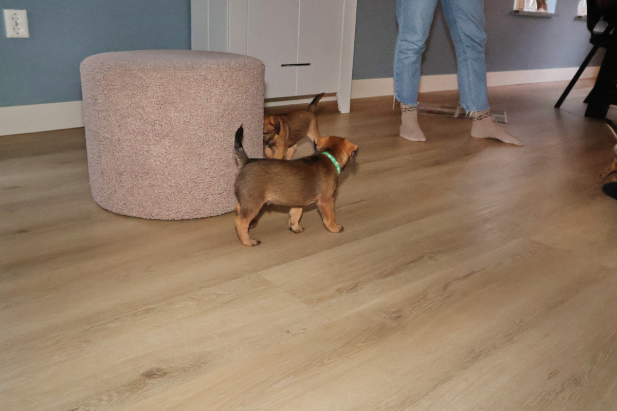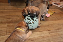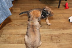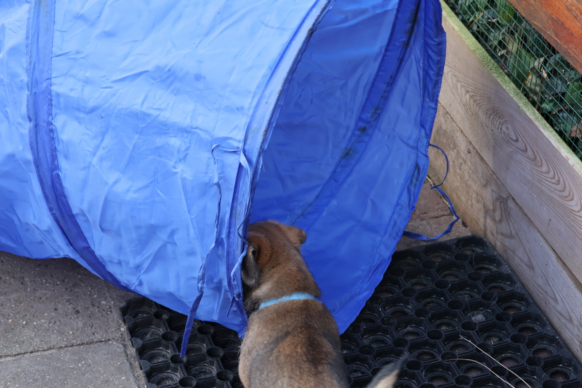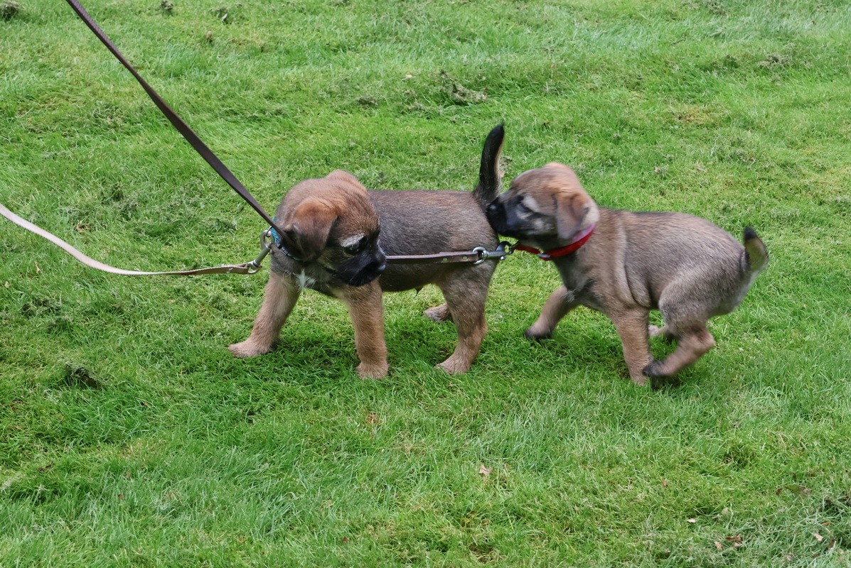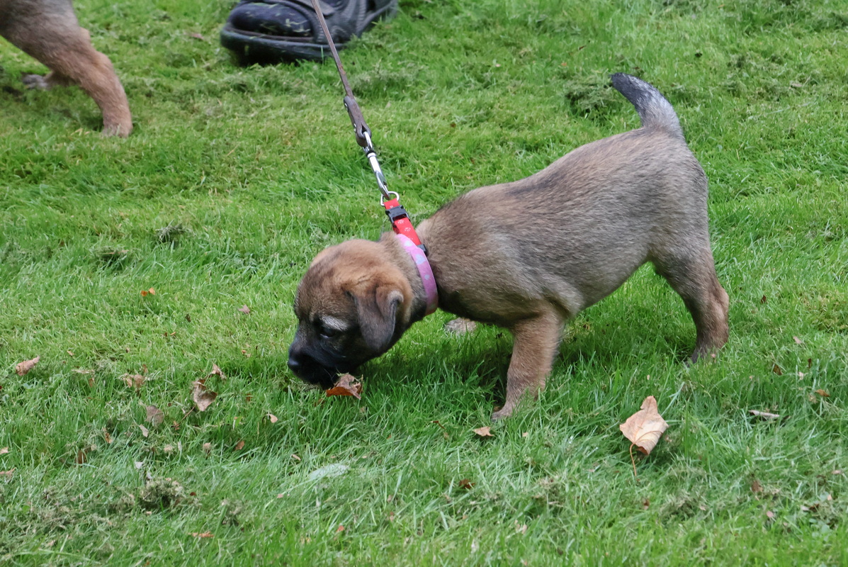 Wij gebruiken altijd het fiets/wandel karretje als we met de pups wat gaan doen. De eerste keer is het maar een klein stukje, gewoon om de puppy’s te laten wennen.