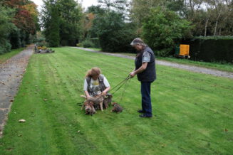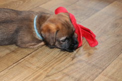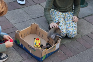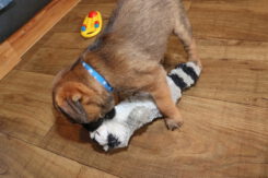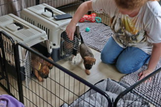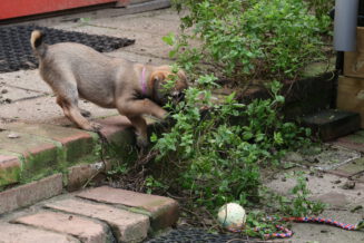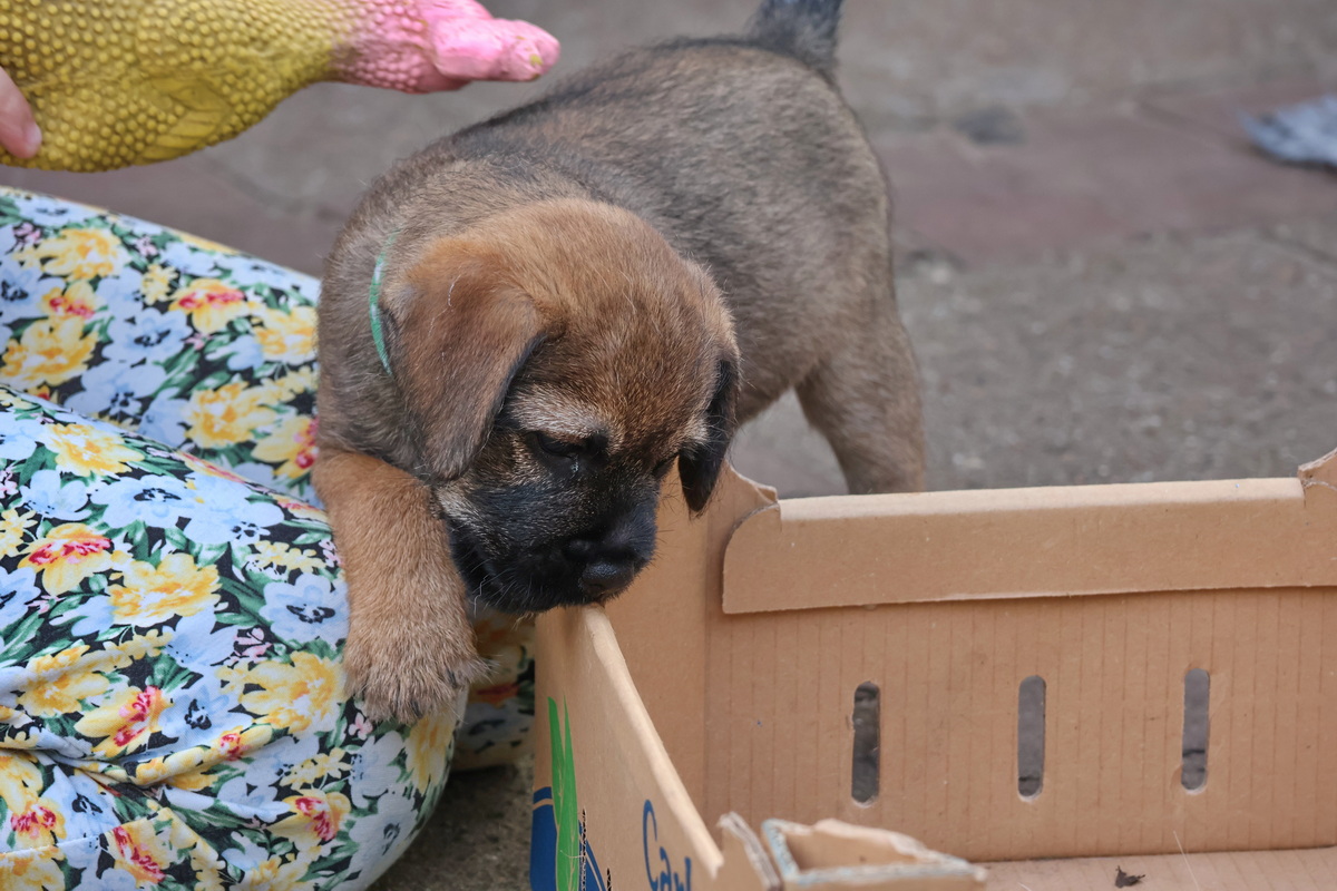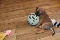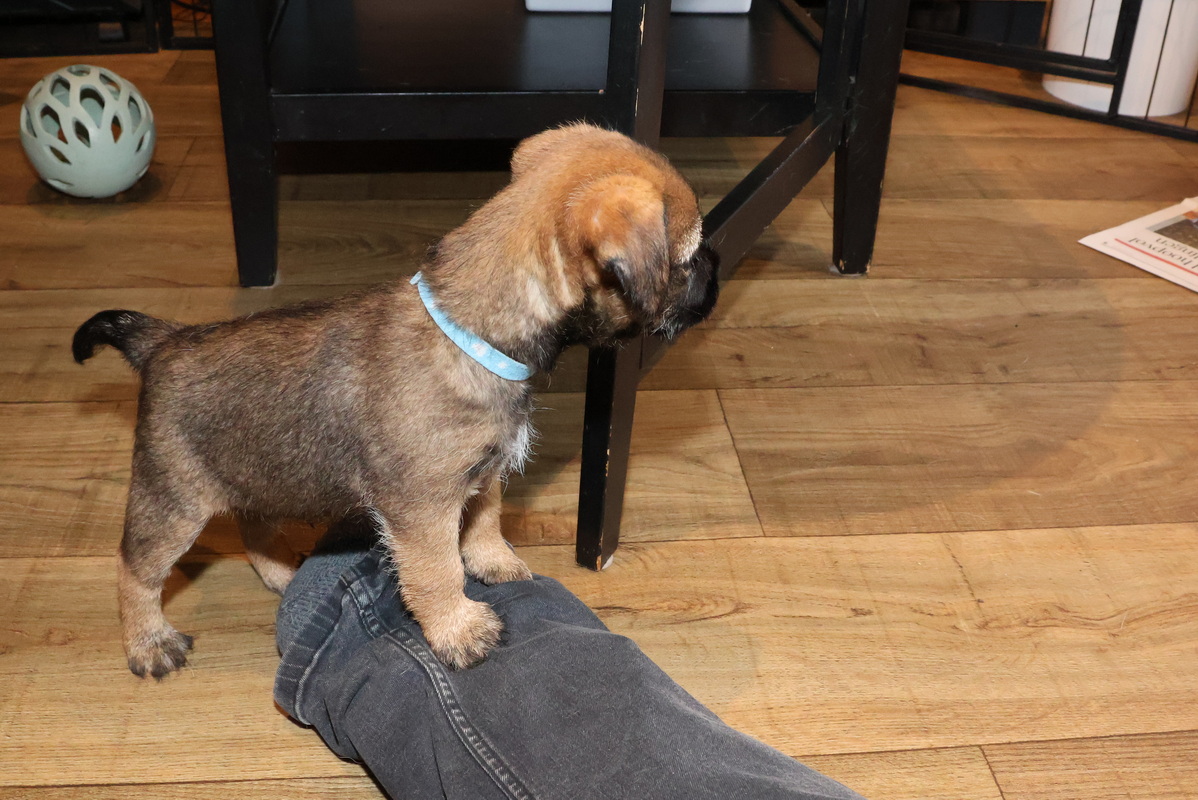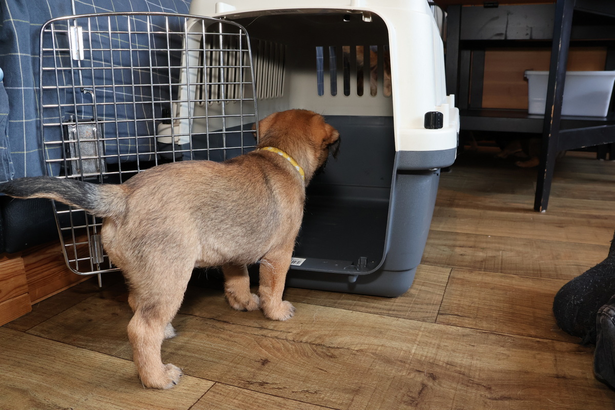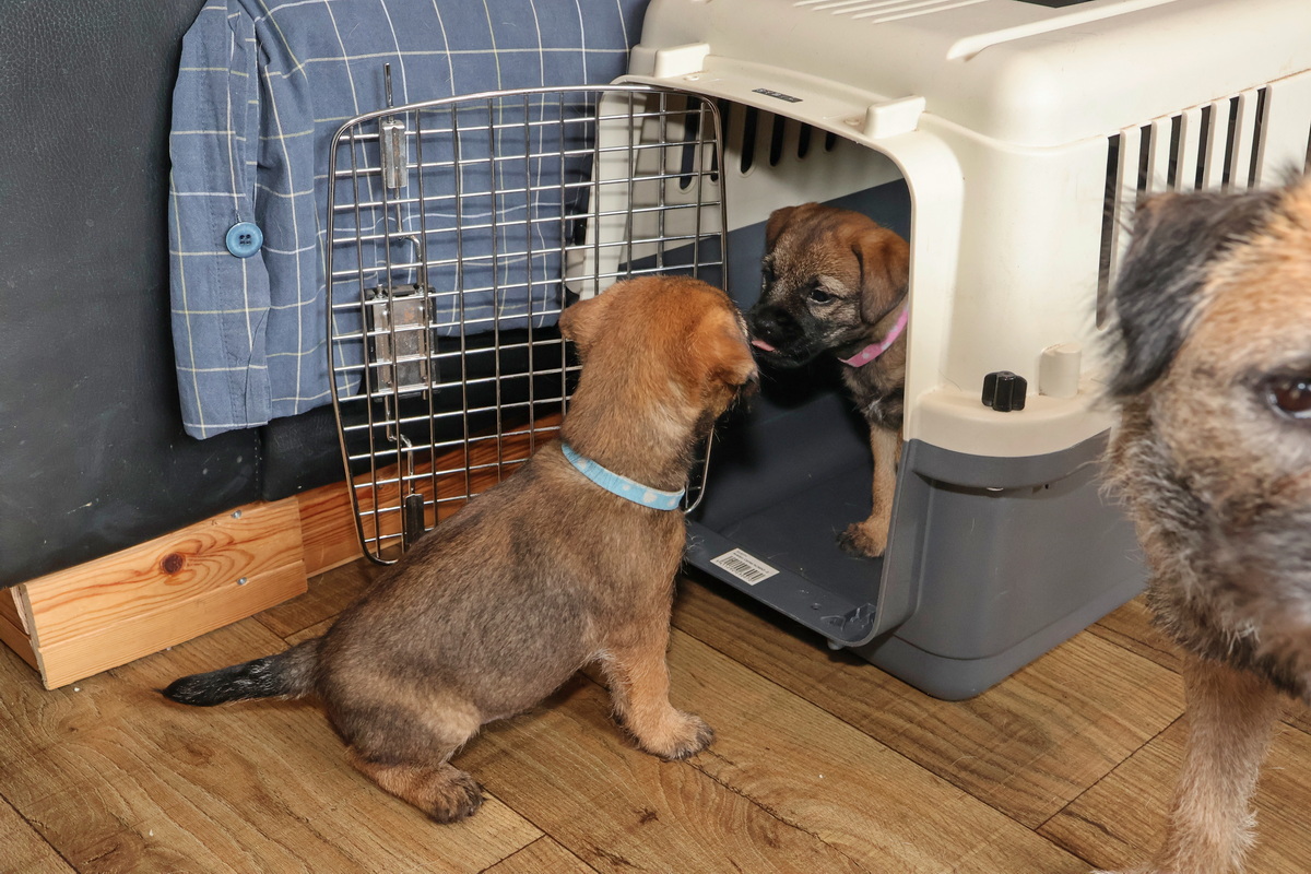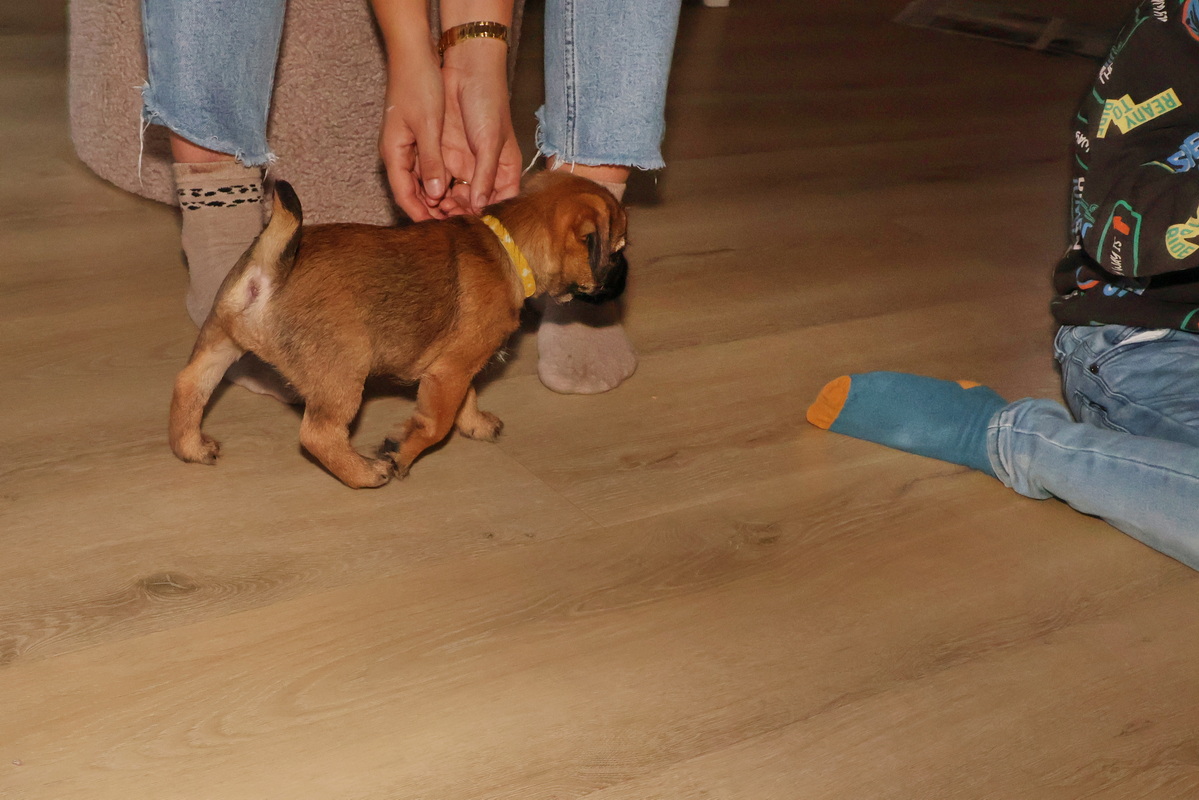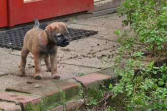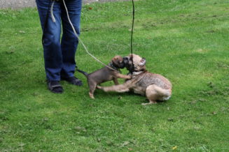 Wij gebruiken altijd het fiets/wandel karretje als we met de pups wat gaan doen. De eerste keer is het maar een klein stukje, gewoon om de puppy’s te laten wennen.