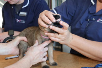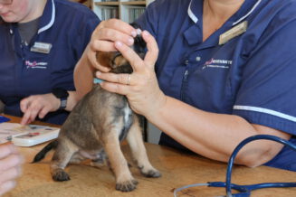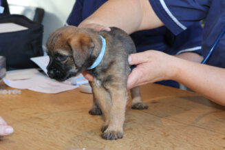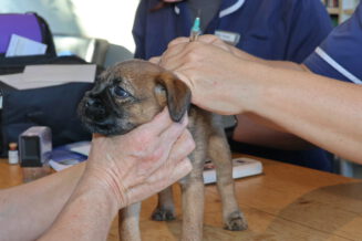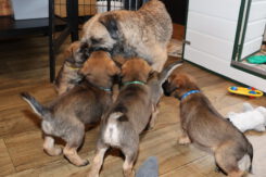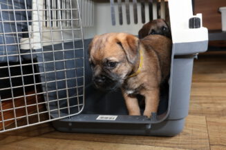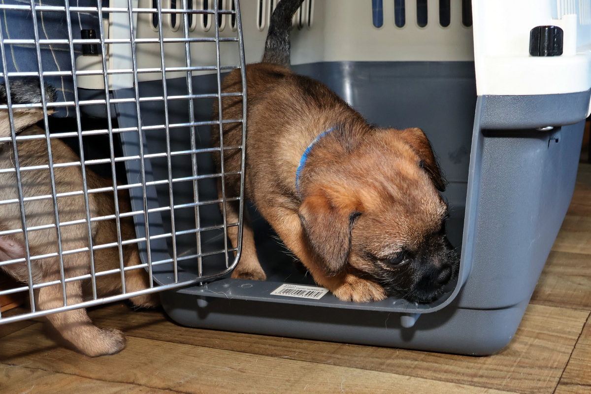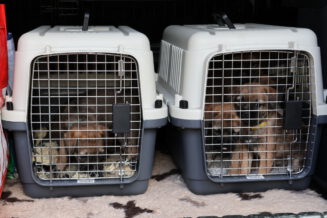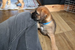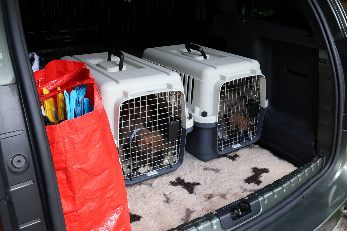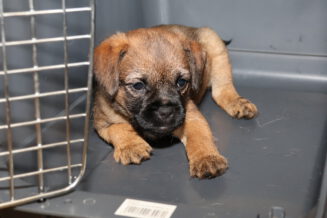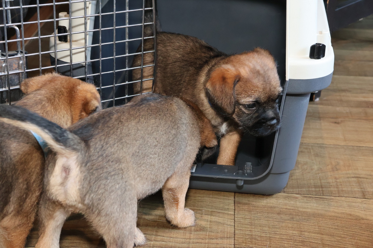 De puppy’s vonden het ritje best leuk. Ze zaten voor de raampjes te kijken naar de grote mensen wereld. Ze bleven vrij rustig en waren helemaal niet angstig of onrustig.